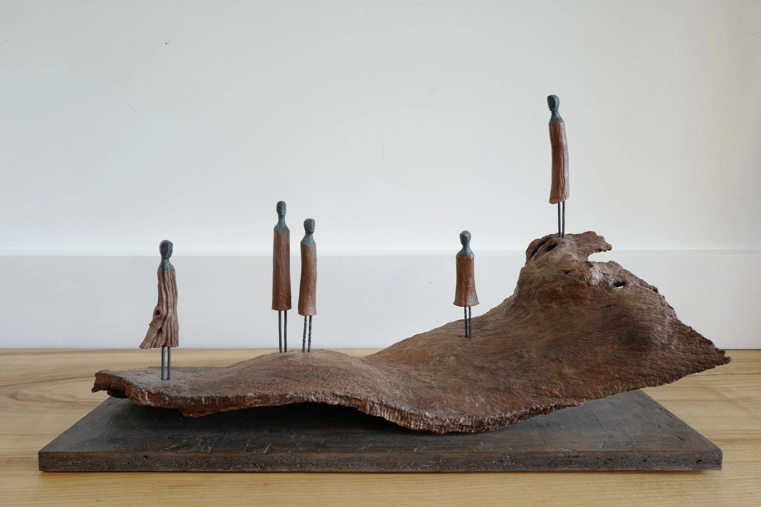 “Roger Hardy is one of the lucky sculptors who seems to live and work in his perfect environment, he has stated wisely that the answer always lies in nature and in this work we see the dialogue between the natural world and Hardy’s studio. To-ing and fro-ing, drawing on ancient themes and dealing with contemporary mores. Hardy’s work feels personal, he is processing his life and times through his natural medium. And still, he leaves room for us to see our own story within his telling. Roger Hardy has a wonderful sustainable modus operandi all he needs are big skies and plenty of driftwood in the mud. All power to him”.